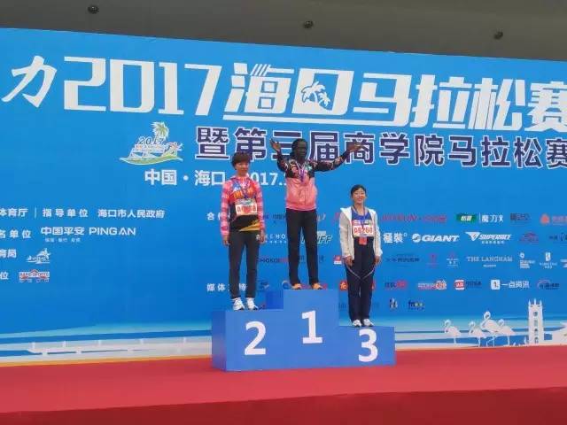 2017平安·富力??隈R拉松女子全程前三于頒獎臺上合影留念