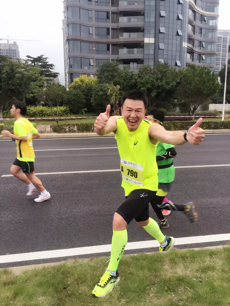 比賽當(dāng)日,細(xì)雨稍停,比賽線路沿福州閩江江濱大道設(shè)置,盡顯福州“三山兩塔一江”中閩江之閩都風(fēng)情。在林新的帶領(lǐng)下,這群可愛的跑友在平坦開闊的賽道上快樂的奔跑著,最后順利完成他們?nèi)松氖讉€(gè)半馬。